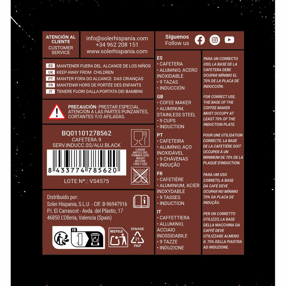 Italian Coffee Pot Quttin Black 0,45 L (6 Units) is backordered and will ship as soon as it is back in stock.