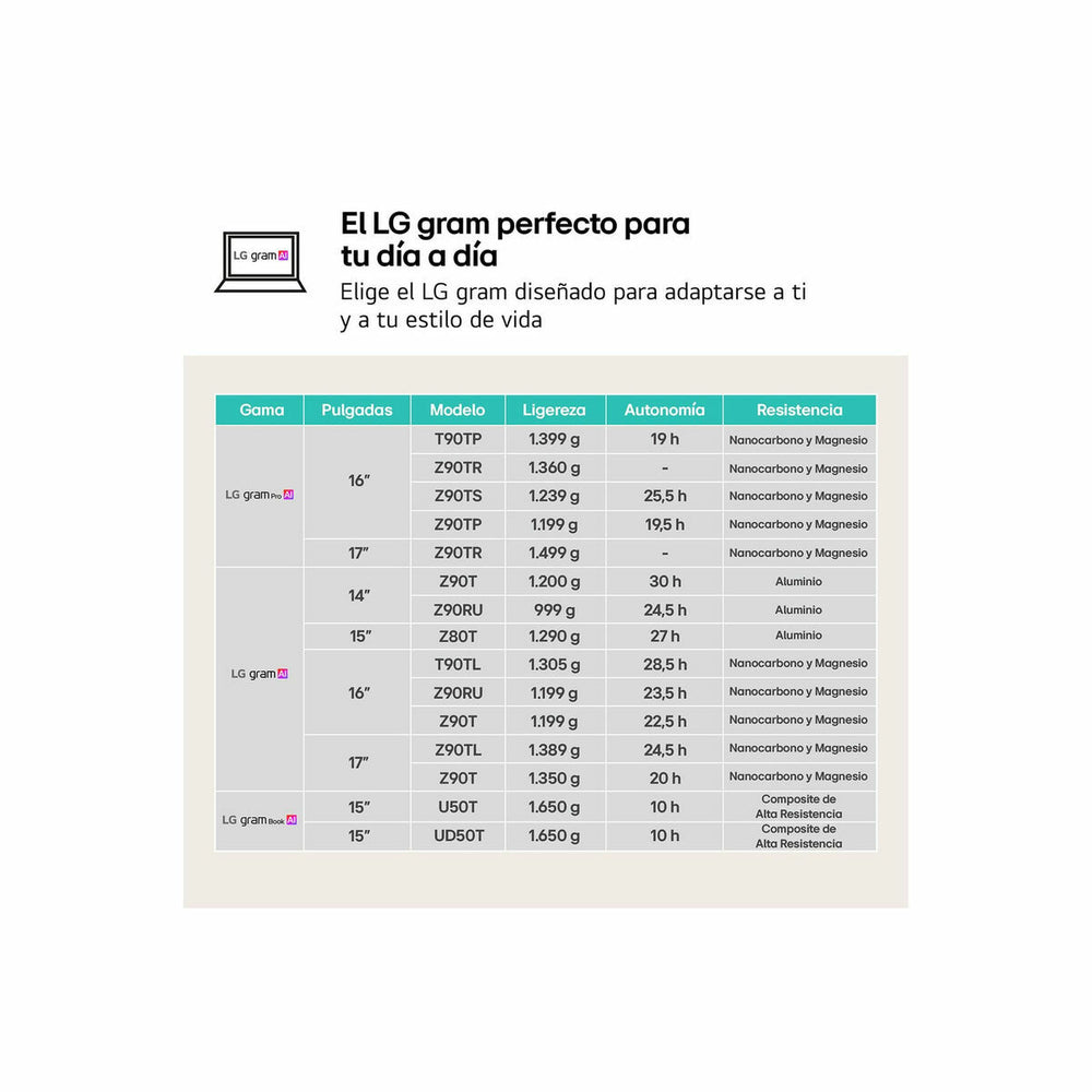 In summary, the LG gram 16Z90RU combines an ultralight design with high-level specifications, designed for professionals and demanding users who require mobility, power, and reliability in a portable device.