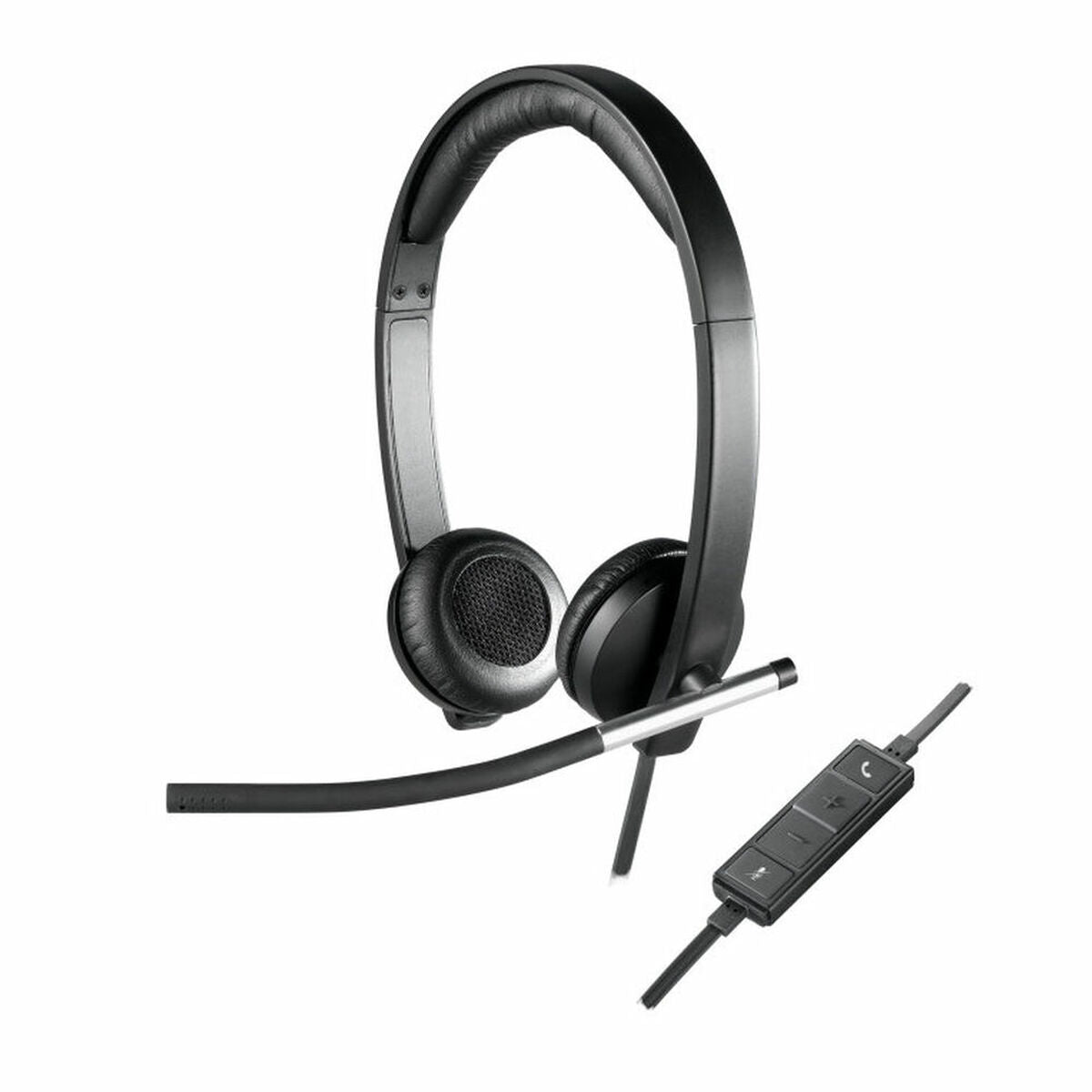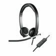 The double-ear, corded headset with enterprise-grade audio that people actually want to use. Double-ear (stereo) corded design Ideal for employees who need to block off surrounding noise for laser-like focus during desktop calls. Combines enterprise-audio quality with the human-centric design Logitech is known for Comfortable, stylish and intuitive so people actually love to use them – further enhancing UC collaboration in your workplace In-call LED red-light indicator Located on the backside of the boom, this red light provides a visual alert to those behind you that you are on a call, preventing accidental disturbances during calls. Quick-access inline controller Control the call with answer/end, volume up/down and mute buttons. The volume-up button is strategically built higher than the others providing a point of reference for your fingers and allowing you to control the call without looking away from your work. Flat no-tangle cable Avoid cord tangles so you can put the headset on quickly and easily without the mess. Acoustic echo cancelation and noise-cancelling microphone Optimized so you can hear and be heard even in noisy workspaces. Digital Signal Processing (DSP) Enables precise tuning for both the mic and speaker so conversations are more life-like. Contemporary, ultra-lightweight design Sleek design and durable materials provide a more attractive look than traditional headsets. Flexible microphone boom Rotate the boom up or down and bend it left or right to move it closer to your mouth, enabling optimal placement for voice pickup. Optimized for Microsoft® Lync™; Compatible with most leading UC platforms Ensures enterprise-quality audio and an integrated experience with most all business-grade UC platforms. Dynamic equalizer Automatically switches between voice and music modes, delivering the best sound quality for what the user is listening to. Wideband audio Hear and be heard in true wideband audio, ensuring those on both sides of the call enjoy a lifelike listening experience. Padded leatherette headband and earpads Built with high quality materials so the headset remains comfortable, even during long hours of use. Cloth zipper bag included Protect your headset at the desk or on-the-go with a premium velvet carry bag.