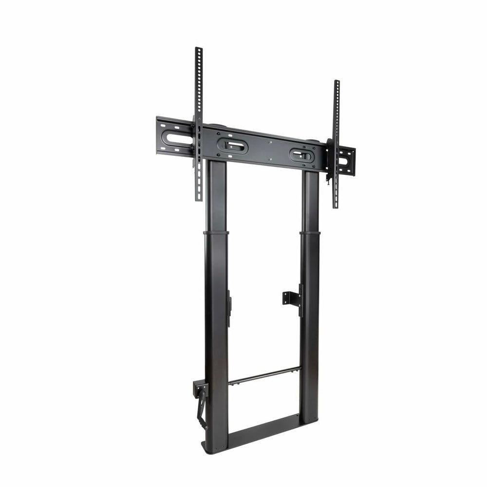 The TooQ FS2290HM-B TV mount is a fixed wall bracket designed for large screens, compatible with TVs from 55 to 100 inches. Made of durable steel in black, this mount combines strength and stability, providing a reliable solution for installing screens on floors or walls, ideal for professional environments such as meeting rooms, exhibitions, or classrooms. Its fixed design ensures secure and stable support, while its adjustable structure allows height modification to optimize the viewing angle according to space requirements. The Lottus model, part of the TooQ line, stands out for its versatility and easy assembly, enabling quick installation without compromising firmness or durability. Its size and strength are especially suited for large-format screens, facilitating a comfortable and elevated viewing experience, enhancing space use and ensuring a clean, professional setup. This mount is a practical and safe option for those seeking a solid and aesthetic solution to place large TVs on various surfaces within the Spanish market.
