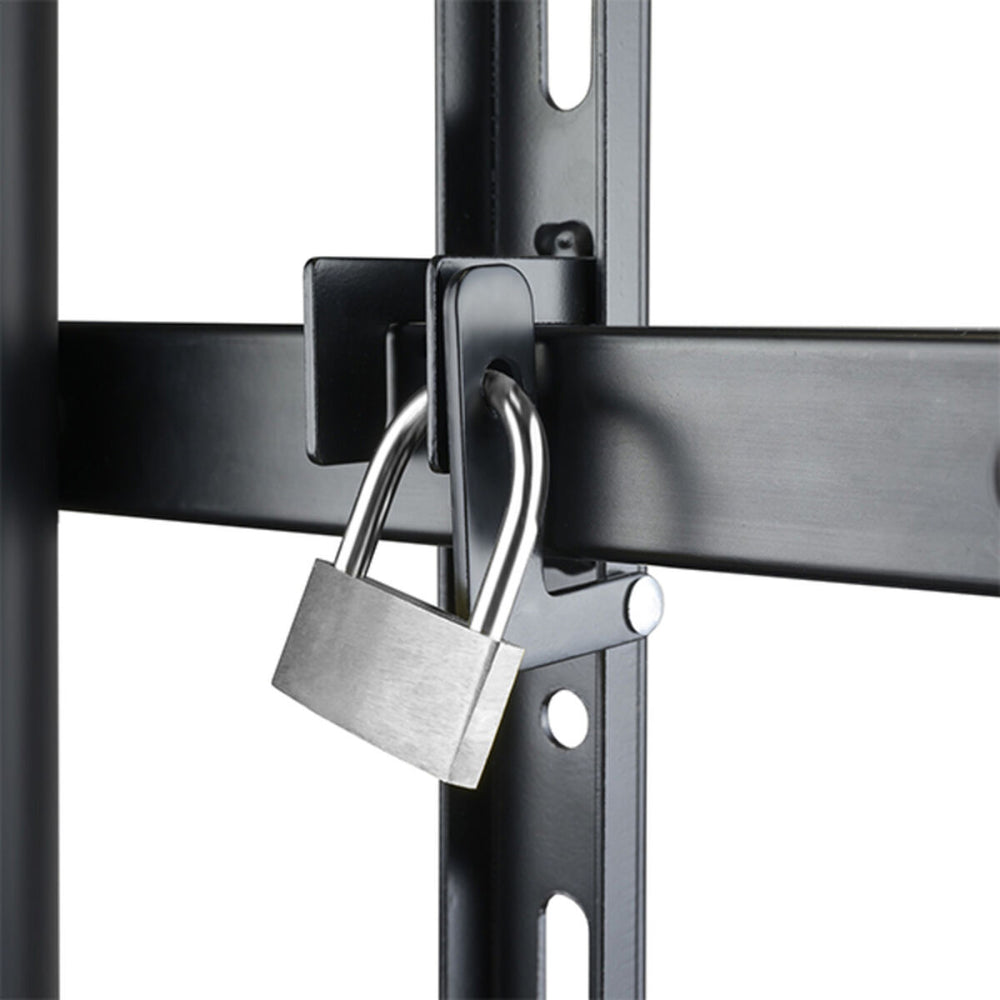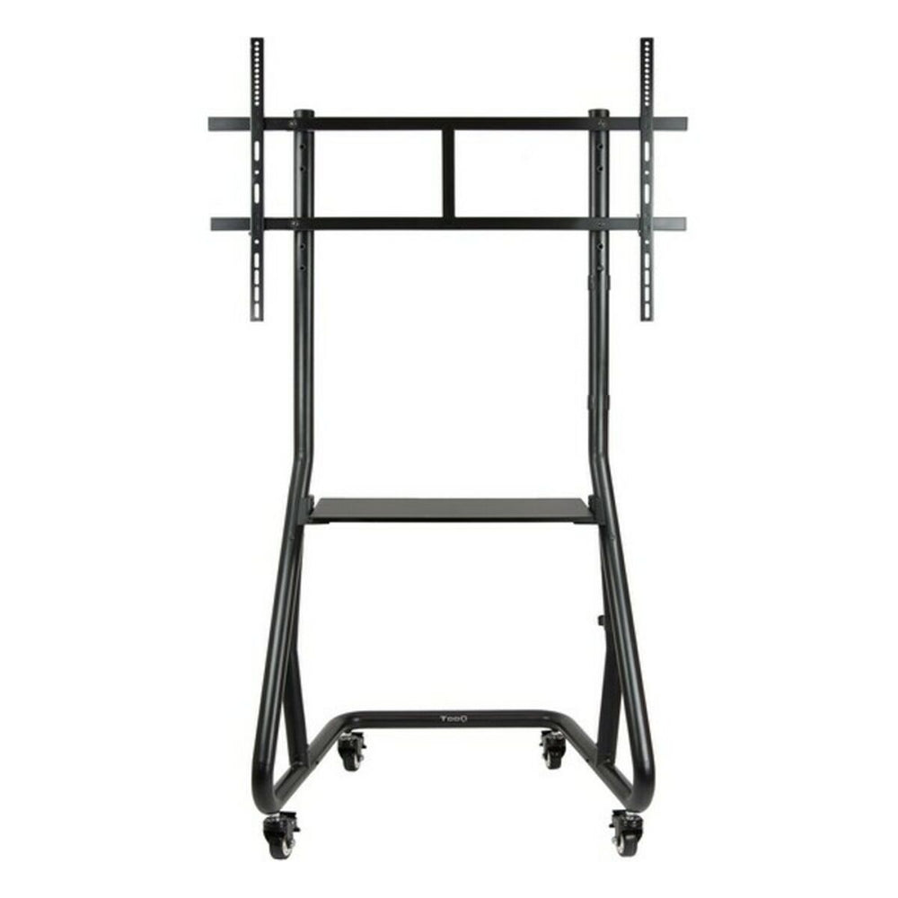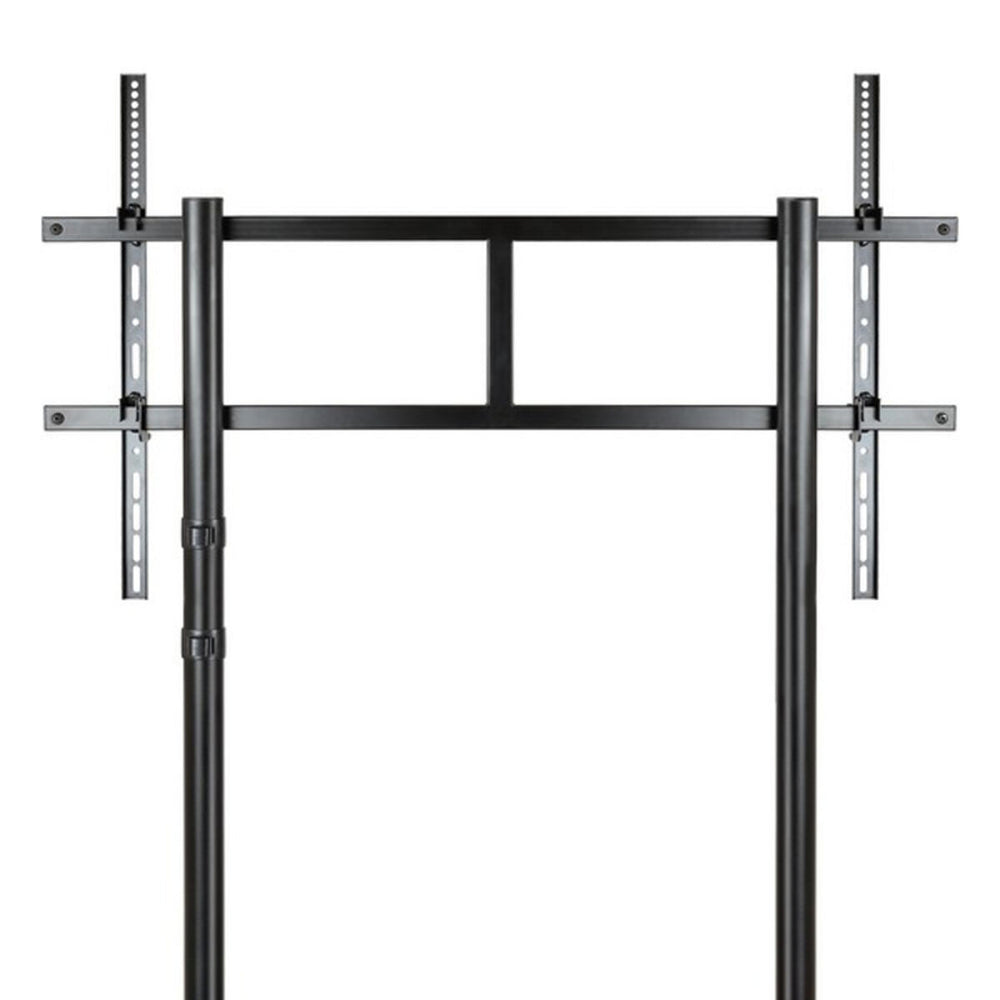 The TooQ FS20200M-B TV stand is a floor TV mount designed to provide a robust and versatile solution for installing large screens ranging from 60” to 105”. Made of high-strength metal, this stand ensures durability and stability, supporting a maximum weight of 100 kg, making it compatible with large and heavy TVs or professional displays. The design includes both wheels and legs, facilitating mobility while providing safety when fixed in place, ideal for environments requiring flexibility and frequent equipment movement. It also features a tray that can be used to hold auxiliary devices or cables, helping maintain optimal organization and a clean finish in audiovisual setups. Its black finish gives it a sober and professional look, suitable for any setting, from offices and meeting rooms to spacious homes or studios. This model also stands out for its compatibility with cable management systems and its configuration that facilitates the integration of various screen types, thanks to its adaptable and adjustable structure. Overall, the FS20200M-B combines functionality, strength, and mobility for users needing a reliable and practical stand for large-format screens. It is a solid technical option within the range of TV mounts that meet high weight and size demands, offering safety and ease of use in professional or domestic installations.