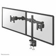 The Neomounts FPMA-D960D TV mount is an ergonomic monitor arm designed to securely and flexibly hold up to two flat screens ranging from 10 to 27 inches (25.4 to 68.6 cm), compatible with standard VESA sizes from 75 x 75 mm to 100 x 100 mm. Featuring an elegant and understated black finish, this desktop mount attaches via a practical clamp that optimizes desk space by eliminating bulky bases. It includes three pivot points offering advanced movement freedom, with a tilt range of 0 to 180°, a full 360° swivel, and an additional 180° rotation, making it easy to adjust screens to the desired viewing angle and improving ergonomics to reduce neck and back strain. Its height is manually adjustable from 0 to 45 cm, and its depth ranges between 10 and 43 cm, adapting to various workstations or professional environments. Additionally, it features innovative cable management that hides and neatly directs cables toward the screens, keeping the workspace clean and organized. With a load capacity of up to 8 kg per screen, this model is ideal for offices, reception areas, and counters requiring ergonomic and functional dual-monitor solutions. For curved or larger screens, Neomounts offers other recommended models, but the FPMA-D960D stands as a practical and sturdy option for standard flat screens, enabling a professional and adaptable setup. This mount is ready for easy installation as it includes all necessary hardware, emphasizing functionality and comfort for users looking to optimize their space and posture at the computer.