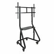 The TooQ FS20200M-B TV stand is a floor TV mount designed to provide a robust and versatile solution for installing large screens ranging from 60” to 105”. Made of high-strength metal, this stand ensures durability and stability, supporting a maximum weight of 100 kg, making it compatible with large and heavy TVs or professional displays. The design includes both wheels and legs, facilitating mobility while providing safety when fixed in place, ideal for environments requiring flexibility and frequent equipment movement. It also features a tray that can be used to hold auxiliary devices or cables, helping maintain optimal organization and a clean finish in audiovisual setups. Its black finish gives it a sober and professional look, suitable for any setting, from offices and meeting rooms to spacious homes or studios. This model also stands out for its compatibility with cable management systems and its configuration that facilitates the integration of various screen types, thanks to its adaptable and adjustable structure. Overall, the FS20200M-B combines functionality, strength, and mobility for users needing a reliable and practical stand for large-format screens. It is a solid technical option within the range of TV mounts that meet high weight and size demands, offering safety and ease of use in professional or domestic installations.
